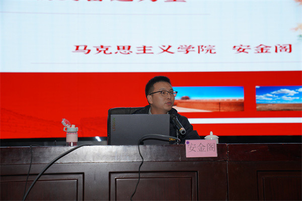 為深入學習貫徹習近平新時代中國特色社會主義思想,進一步加強學?!按笏颊惫ぷ?,培養(yǎng)德智體美勞全面發(fā)展的社會主義建設者和接班人,根據學?!暗掠笾v堂”活動安排, 11月1日下午,馬克思主義學院安金閣老師為全校師生開設了《銘刻歷史記憶,激發(fā)奮進力量》的專題講座。講座由學生工作處副處長李建平主持,馬克思主義學院負責人金純峰、相關學院學管院長、學管科長,馬克思主義學院全體教師及學生代表在主會場參會,各班級分會場線上參會。