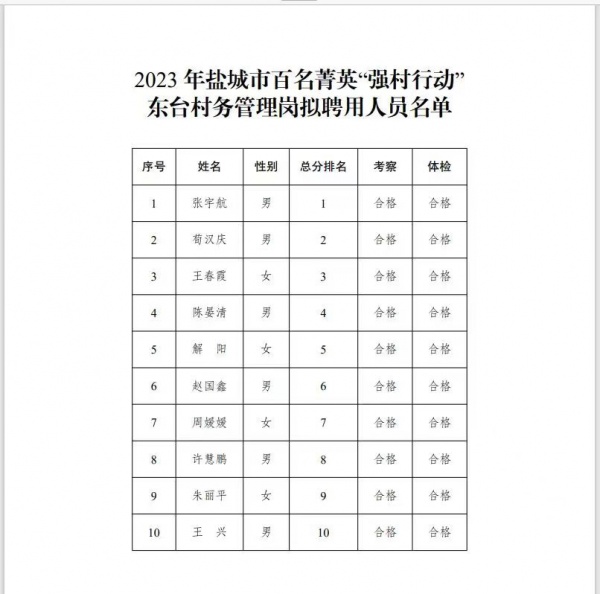 日前,從東臺(tái)市委組織部傳來(lái)喜訊:鹽城技師學(xué)院2023屆畢業(yè)生張宇航、荀漢慶,在2023年鹽城市百名菁英“強(qiáng)村行動(dòng)”人才引進(jìn)工作中,分別名列東臺(tái)村務(wù)管理工作崗第一、第二名。本次“強(qiáng)村行動(dòng)”人才引進(jìn)工作中,包括省內(nèi)6所本科院校畢業(yè)生在內(nèi)349人參加崗位競(jìng)爭(zhēng),經(jīng)綜合素質(zhì)評(píng)價(jià)、面試、考察等層層遴選,張宇航、荀漢慶以明顯的優(yōu)勢(shì)脫穎而出。