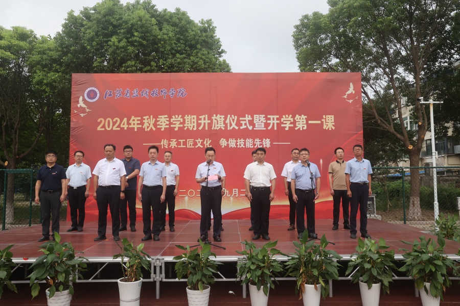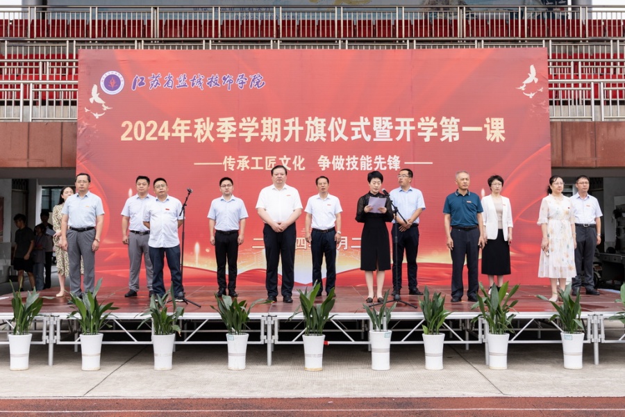 9月2日上午,江蘇省鹽城技師學院在文港路校區(qū)和海洋路校區(qū)同步舉行2024年秋學期升旗儀式暨開學第一課,副校長夏建友、鄭海風分別代表學校在文港路校區(qū)和海洋路校區(qū)做國旗下講話,黨委委員姚小強、曹永紅分別主持。全體師生參加。