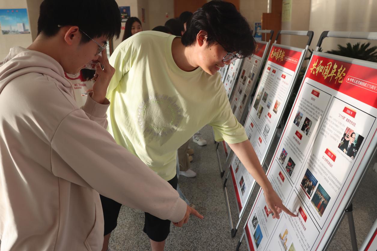 9月28日,國慶節(jié)前夕,由馬克思主義學(xué)院舉辦的“共和國年輪:中華人民共和國成立75周年大事記展”分別在海洋路和文港路兩個(gè)校區(qū)開展。展覽通過時(shí)間軸的形式,全面展示新中國從成立至今的重要?dú)v史節(jié)點(diǎn)、重大事件和標(biāo)志性成果,讓全校師生深刻感受共和國的輝煌歷程與偉大成就。