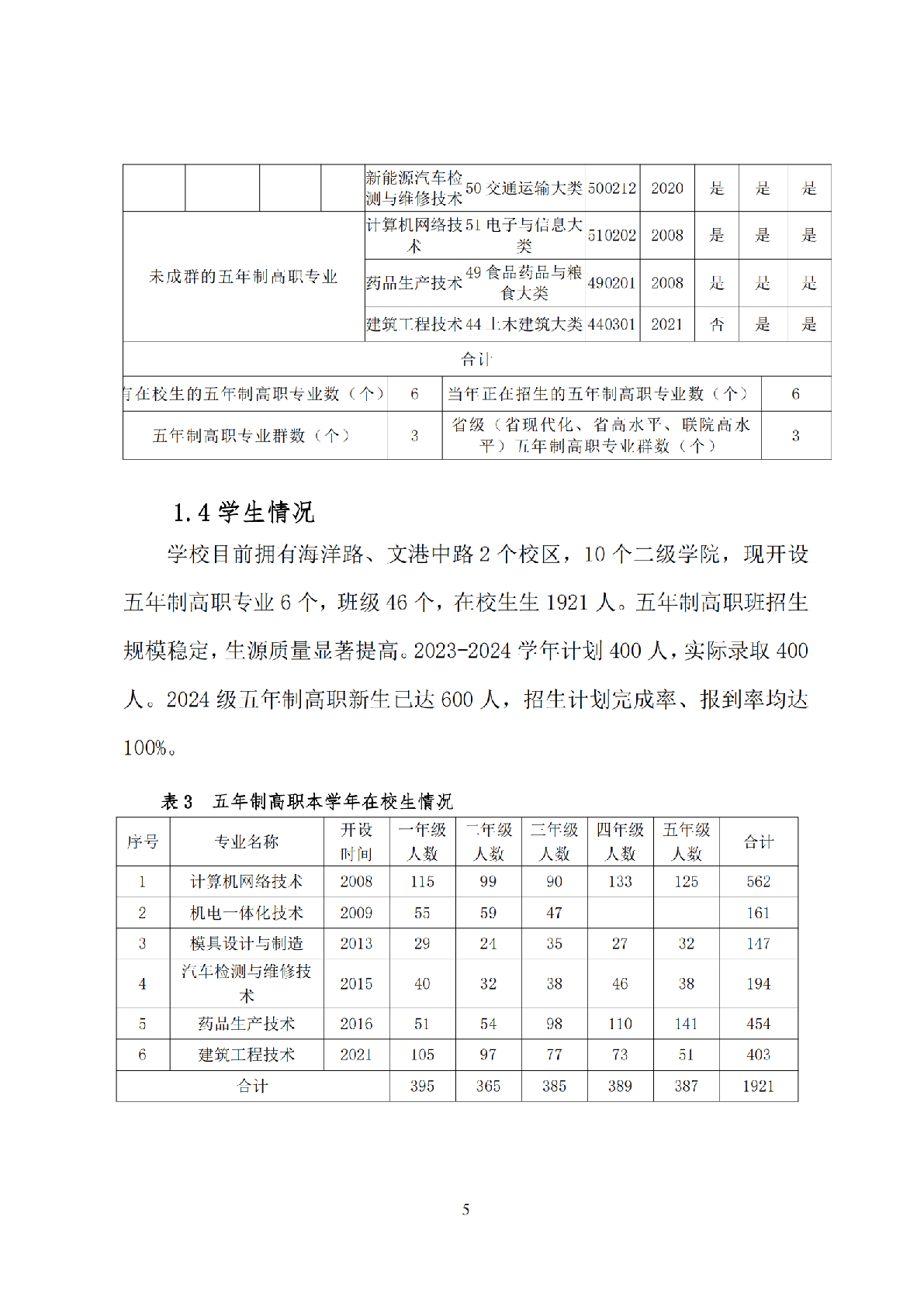 五年制高等職業(yè)教育質(zhì)量年度報(bào)告